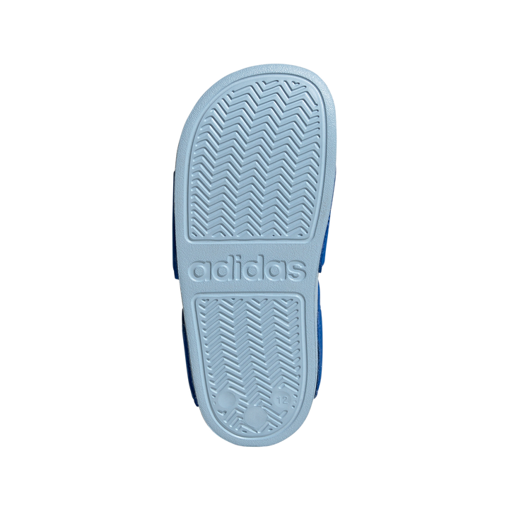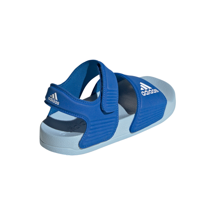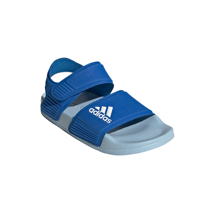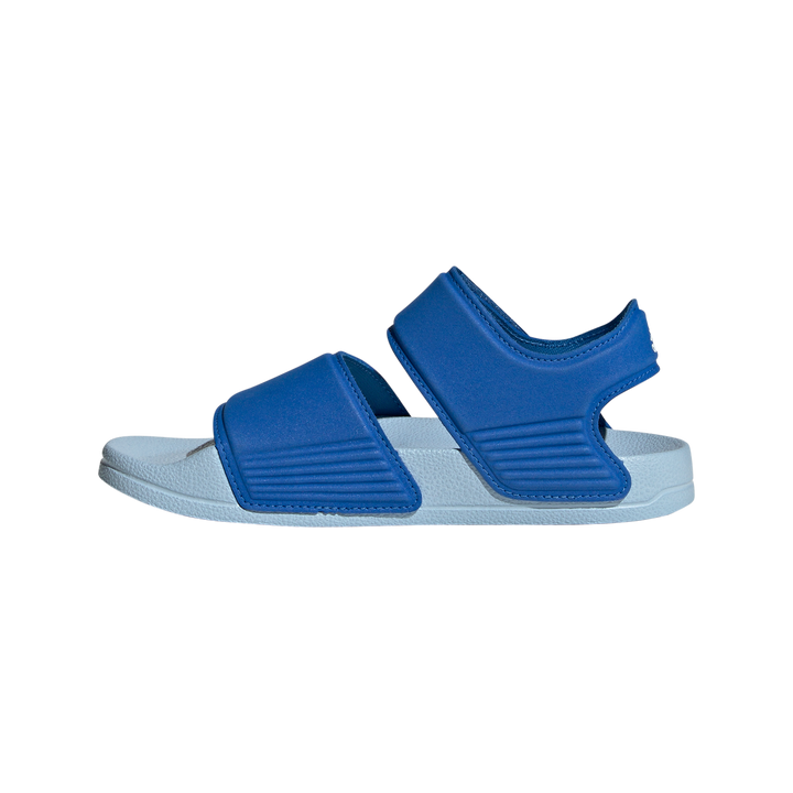Inspired by classic Adilette slides, these kids' adidas sandals are perfect for sunny days of play in and out of the water. A hook-and-loop strap creates an easy on and off. The quick-drying upper lets them play in comfort until they're back on dry land.
