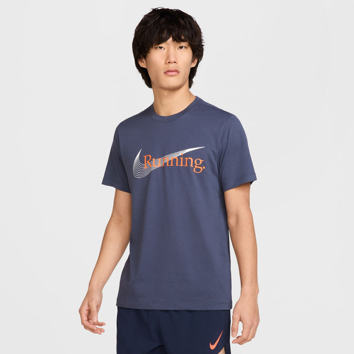 Focus on the basics when it's time to complete your next route with this Nike Dri-FIT running tee. Smooth, sweat-wicking fabric helps you stay fresh—whether you're just beginning a weekly routine or bumping up your monthly mileage goals.