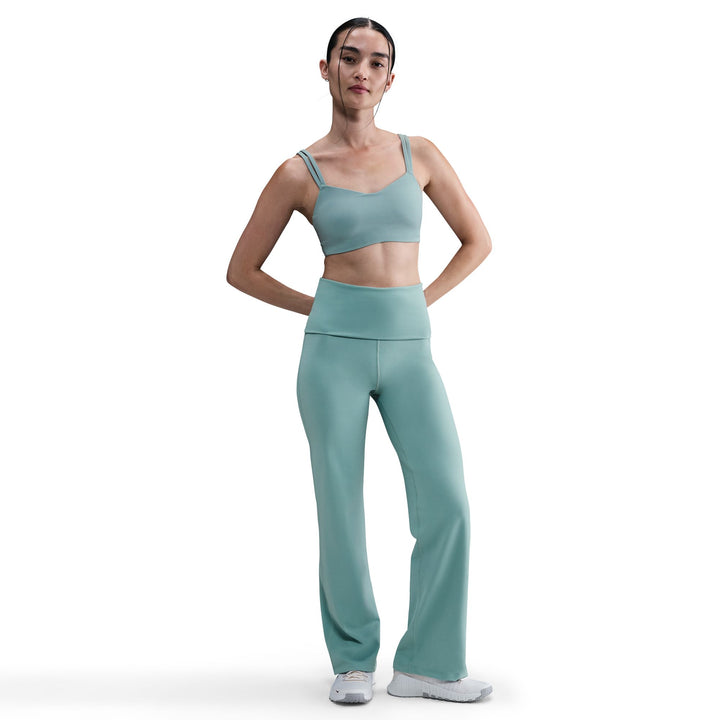 Nike One Women's Dri-FIT High-Waisted Fold-Over Pants These bootcut pants are the Ones that are ready for whatever you are. Their midweight, peachy-soft fabric stretches with your every move and dries quickly. Plus, a fold-over waistband gives you styling options. Confident Coverage Non-sheer fabric and a high waist help keep your butt covered no matter how deep you bend and stretch. Fewer seams make for a smooth, flattering fit Stay Dry Nike Dri-FIT technology moves sweat away from your skin for quicker evaporation, helping you stay dry and comfortable. More Details