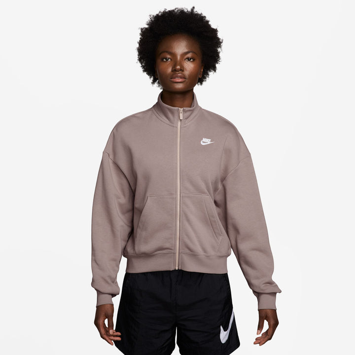 Made with midweight, semi-brushed fleece that's smooth on the outside and slightly fuzzy on the inside, this roomy track jacket gives you a structured yet laid-back look.
