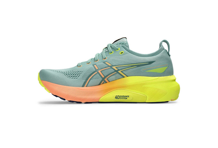 Move your mind with the GEL-KAYANO™ 31 PARIS shoe’s adaptive stability and premium comfort. ?This colorway is inspired by "the city of lights" and its energizing tones. The 4D GUIDANCE SYSTEM™ helps provide adaptive stability. This helps you experience a more supportive and balanced stride during your distance training. ?? Its midsole implements FF BLAST™ PLUS ECO cushioning and PureGEL™ technology. These features make your distance training feel smooth and comfortable.?