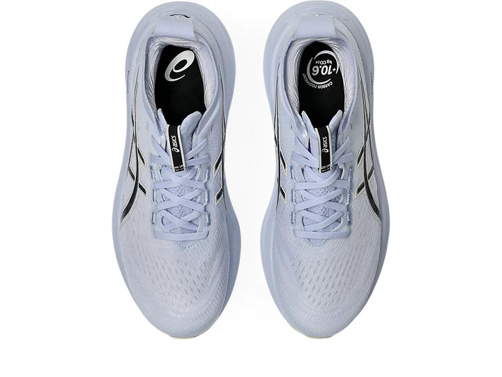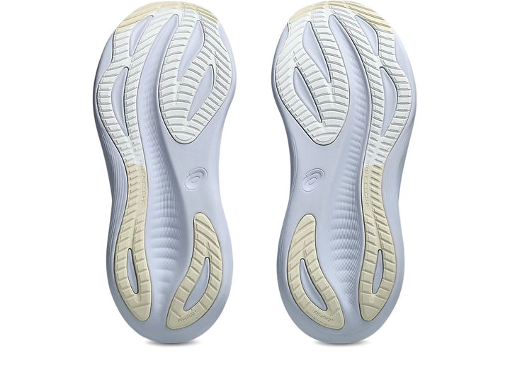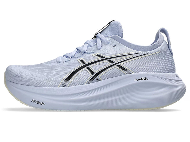 The GEL-NIMBUS™ 27 shoe's soft cushioning properties help you feel like you're landing on clouds. This design is revamped to help create a softer and smoother running experience. A soft engineered jacquard mesh upper comfortably wraps your foot while supplying advanced ventilation. Additionally, the knit tongue and collar help provide a soft and supportive feel. By using FF BLAST™ PLUS cushioning, this trainer creates a lighter and softer cushioning experience. Lastly, HYBRID ASICSGRIP™ outsole combines ASICSGRIP™ rubber and AHARPLUS™ materials to help provide advanced grip for various terrains and advanced durability.