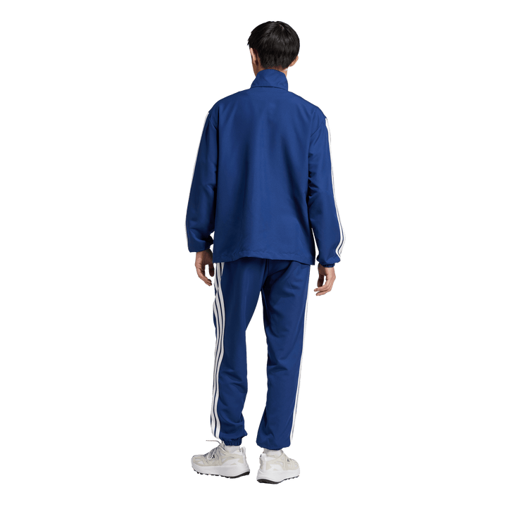 This adidas track suit is ready for anything, whether you're kicking back or on the move. The full-zip jacket has a stand-up collar. Made from smooth woven fabric, it stands out with classic 3-Stripes.