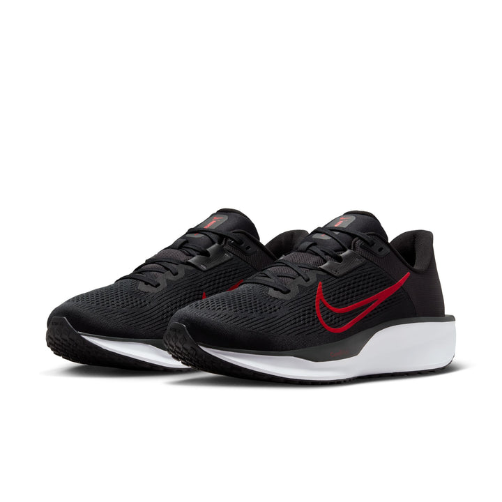 Nike Quest 6 Men's Road Running Shoes A high foam stack and secure fit for your everyday miles. The Nike Quest 6 is for runners of all levels. But make no mistake, it's anything but entry-level. A supercomfortable and supportive midfoot fit band helps keep you stable for your miles. Plus, a supersoft midsole foam helps cushion each step. Secure Fit Midfoot fit band helps keep your foot more secure the tighter your laces are. Softer, More Responsive Increased midsole height means a softer and more responsive ride compared to the Quest 5. Grippy Traction Rubber outsole has the traction to help keep your feet gripped to the pavement. More Details