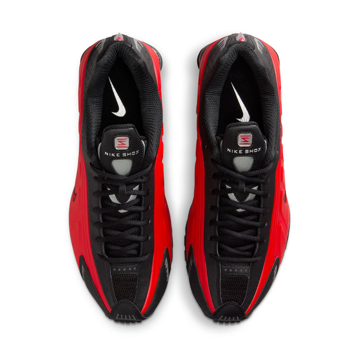 Nike Shox R4 Men's Shoes A recrafted version of the early 2000s icon, the Nike Shox R4 replicates the original with its futuristic design lines and performance-like cushioning. Nike Shox columns in the heel distribute weight to maximize comfort while providing a bold look on the streets. Synthetic and textile upper is soft and durable. Nike Shox technology features resilient, flexible columns that compress and regain shape for outstanding cushioning. Modified, circular Waffle outsole offers great traction. Laser perforations throughout provide ventilation. More Details