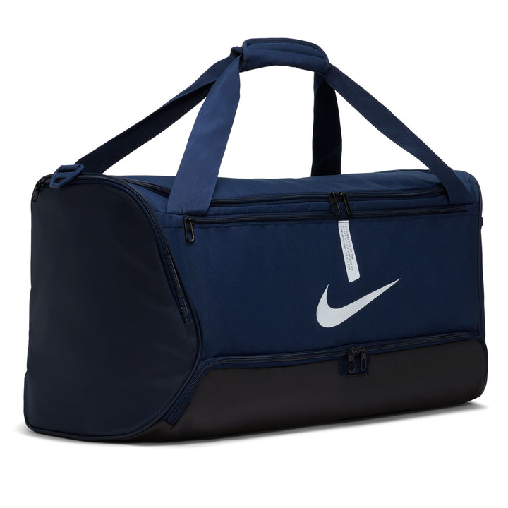 The Nike Academy Team Duffel Bag is a durable design built to keep you organized. Designated compartments provide space for your ball, cleats and clothes—while multiple straps let you comfortably carry your gear when you're on the go.