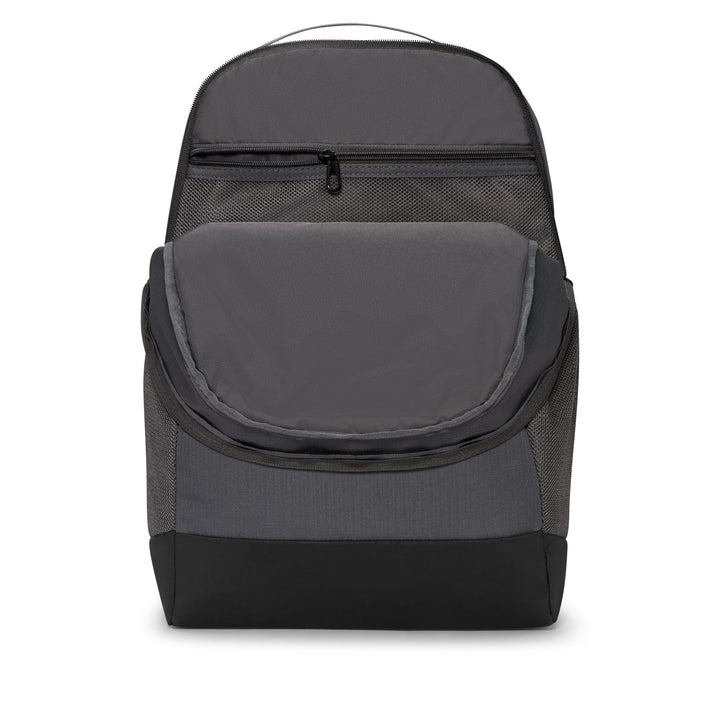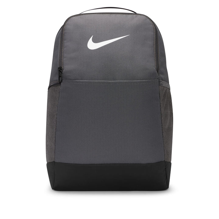 Nike Brasilia 9.5 Training Backpack (Medium, 24L) Grab your gear and get going with the Nike Brasilia Backpack. It has plenty of pockets to help you stay organized including a sleeve to fit your laptop, side mesh pockets for water bottles and a zippered pocket on the inside to keep small items secure. This product is made with at least 50% recycled polyester fibers. Densely woven polyester stands up to the bumps and scrapes of everyday transport. Zippered pocket on the front stores used gear separate from your other things. Padded, adjustable shoulder straps let you carry the pack comfortably. More Details