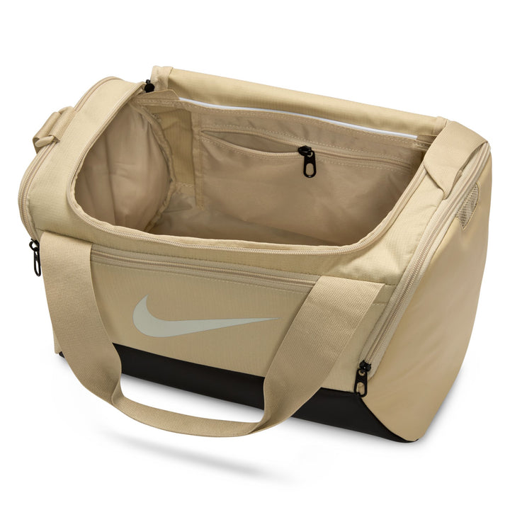 Nike Brasilia 9.5 Training Duffel Bag (Extra Small, 25L) Good things come in small packages, especially when that package is the Nike Brasilia Duffel Bag. Fill it with your gear and stay organized on your next trip to the gym or a daytime adventure. A side compartment stores shoes and sweaty clothes separately, while inner and outer pockets help you stay organized. This product is made with at least 50% recycled polyester fibers. Zippered main compartment secures your training essentials. Zippered inner compartment keeps sweaty clothes separate from your clean gear. Coated bottom helps shield your things from bumps, scrapes and spills. Outer pockets keep your quick must-haves within reach. More Details