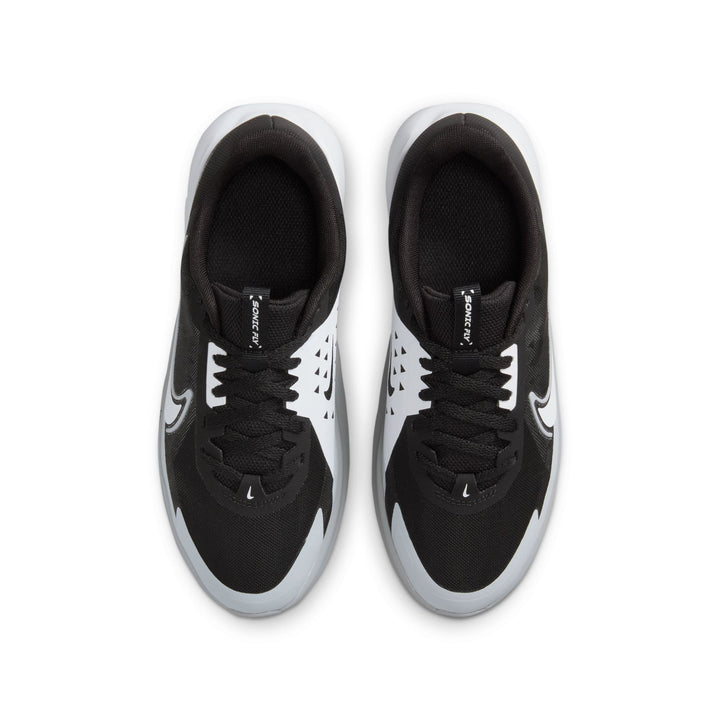 Nike Sonic Fly Big Kids' Running Shoes Why run when you can fly? Designed for record breakers in the making, the Nike Sonic Fly pairs a lightweight design with soft, springy foam that helps add energy to every stride. Responsive Cushioning We packed the midsole with soft and springy foam that absorbs impact and adds energy to every stride you take. Lightweight But Durable Less weight means more speed. Mesh throughout the upper helps keep these shoes lightweight and breathable. We reinforced the toe and sides for added durability. Support You Can Feel Bands at the side of your feet work with the laces to add stability and a secure feel. Traction That Keeps Up Rubber outsole with Waffle-inspired tread pattern helps provide durable traction. More Details