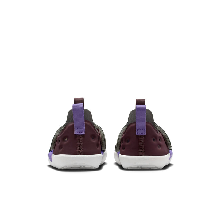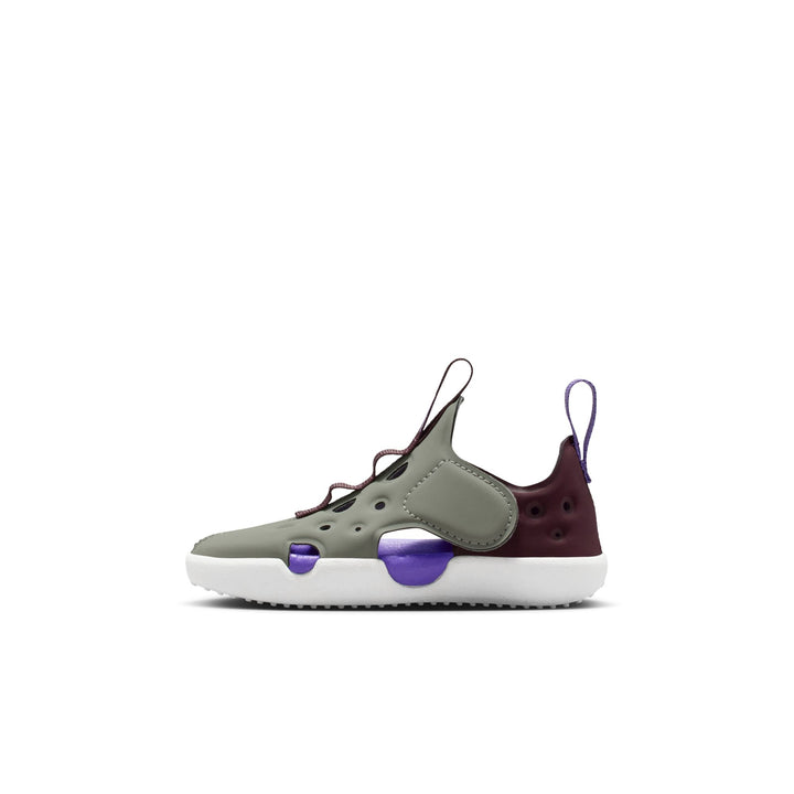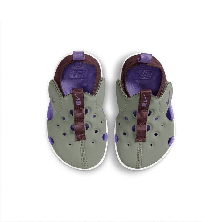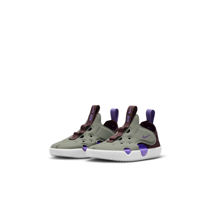 Nike Sunray Protect 4 Baby/Toddler Sandals Easy to pull on and adjust, these water-loving shoes wrap little feet in lightweight comfort. A roomy footbed and flexible materials combine for a barefoot feel that helped this shoe earn the American Podiatric Medical Association Seal of Acceptance. More Coverage Where it's Needed Most Enclosed heel and toe box help shield little feet from dirt, rocks and gravel, offering more coverage than earlier iterations. Barefoot is Best A thin, flexible outsole minimizes what lies between your little one's foot and the ground, giving them a barefoot feel. Natural Foot Development A low profile and flexible design help this shoe earn the American Podiatric Medical Association Seal of Acceptance, which signals it helps promote natural foot development. Reinforced hook-and-loop strap opens wide and is more adjustable than previous versions. Flexible materials in the upper create a lightweight and durable design that also dries quickly after getting wet. Foam cushioning underfoot helps keep every step comfortable. Rubber in the outsole helps provide durable traction.