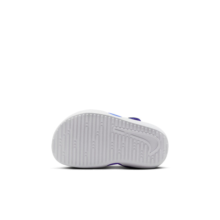 Nike Sunray Protect 4 Baby/Toddler Sandals Easy to pull on and adjust, these water-loving shoes wrap little feet in lightweight comfort. A roomy footbed and flexible materials combine for a barefoot feel that helped this shoe earn the American Podiatric Medical Association Seal of Acceptance. More Coverage Where it's Needed Most Enclosed heel and toe box help shield little feet from dirt, rocks and gravel, offering more coverage than earlier iterations. Barefoot is Best A thin, flexible outsole minimizes what lies between your little one's foot and the ground, giving them a barefoot feel. Natural Foot Development A low profile and flexible design help this shoe earn the American Podiatric Medical Association Seal of Acceptance, which signals it helps promote natural foot development. Reinforced hook-and-loop strap opens wide and is more adjustable than previous versions. Flexible materials in the upper create a lightweight and durable design that also dries quickly after getting wet. Foam cushioning underfoot helps keep every step comfortable. Rubber in the outsole helps provide durable traction.