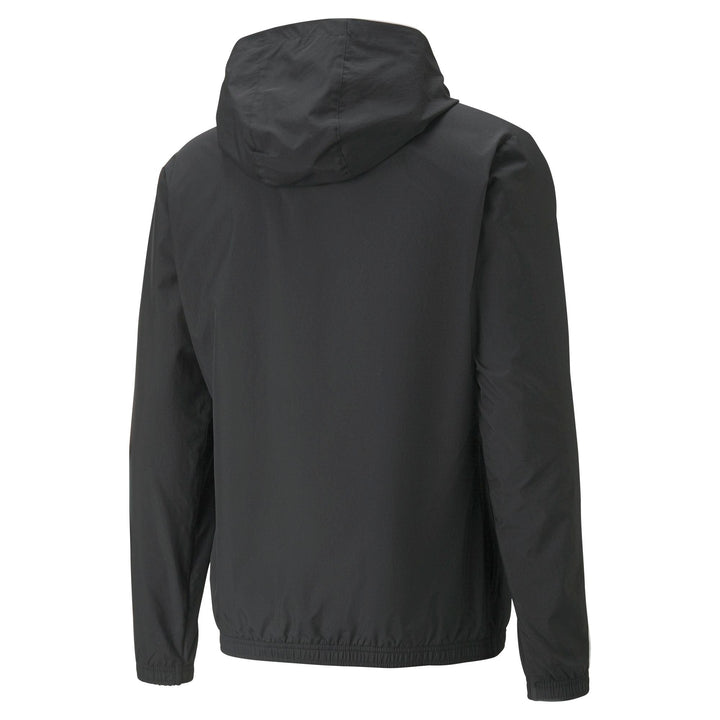 Modern designs and high-performance materials unite in the teamRISE collection to meet the demands of your team, whatever level you play at. Stay protected and match-ready in all weathers in this versatile hooded football jacket featuring colour contrast V-shape piping and iconic PUMA branding.