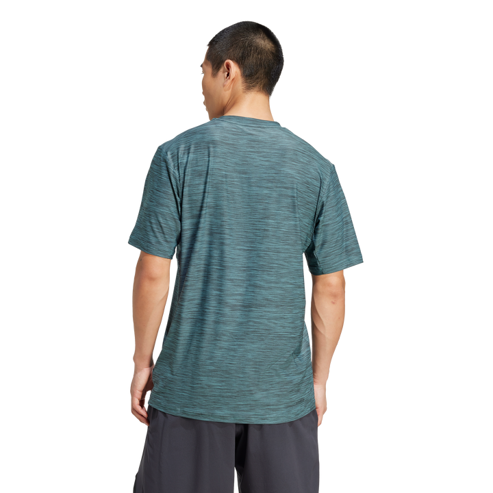 Lift, twist and stretch. Whatever the workout, this adidas training t-shirt gives you total freedom to move. The breathable fabric has plenty of flex, and it's cut for stay-put coverage through overhead movement. AEROREADY keeps you dry every step of the way.