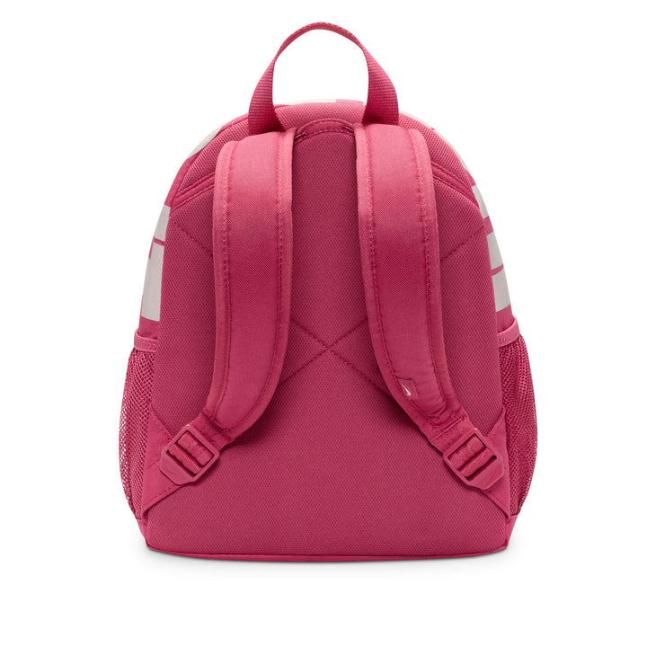 Nike Brasilia JDI Kids' Mini Backpack (11L) A small but mighty bag, the Nike Brasilia JDI Backpack is just the bag for wherever your day takes you. Perfect for hanging out with friends or adventuring around town, this bag features a spacious double-zippered main compartment for the essentials and a smaller front pocket for the small stuff that you need to grab quickly. Side pockets hold a water bottle or other small essentials. Padded shoulder straps are adjustable for a comfortable fit. A Just Do It. keychain and screen print gives this bag signature Nike swag. More Details